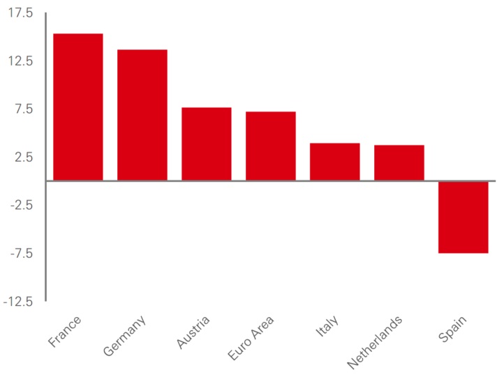 Figure 9: Predicted change in net debt to GDP to 2030 (IMF Fiscal Monitor, per cent)